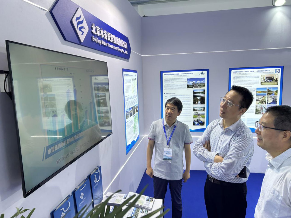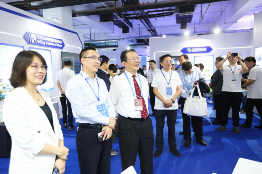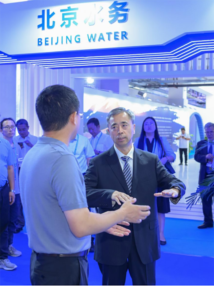 9月11日,北京市水务局局长潘安君参观北京水务展区, 并前往水投集团展位参观指导,水投集团总会计师张睿、副总经理张文理陪同。