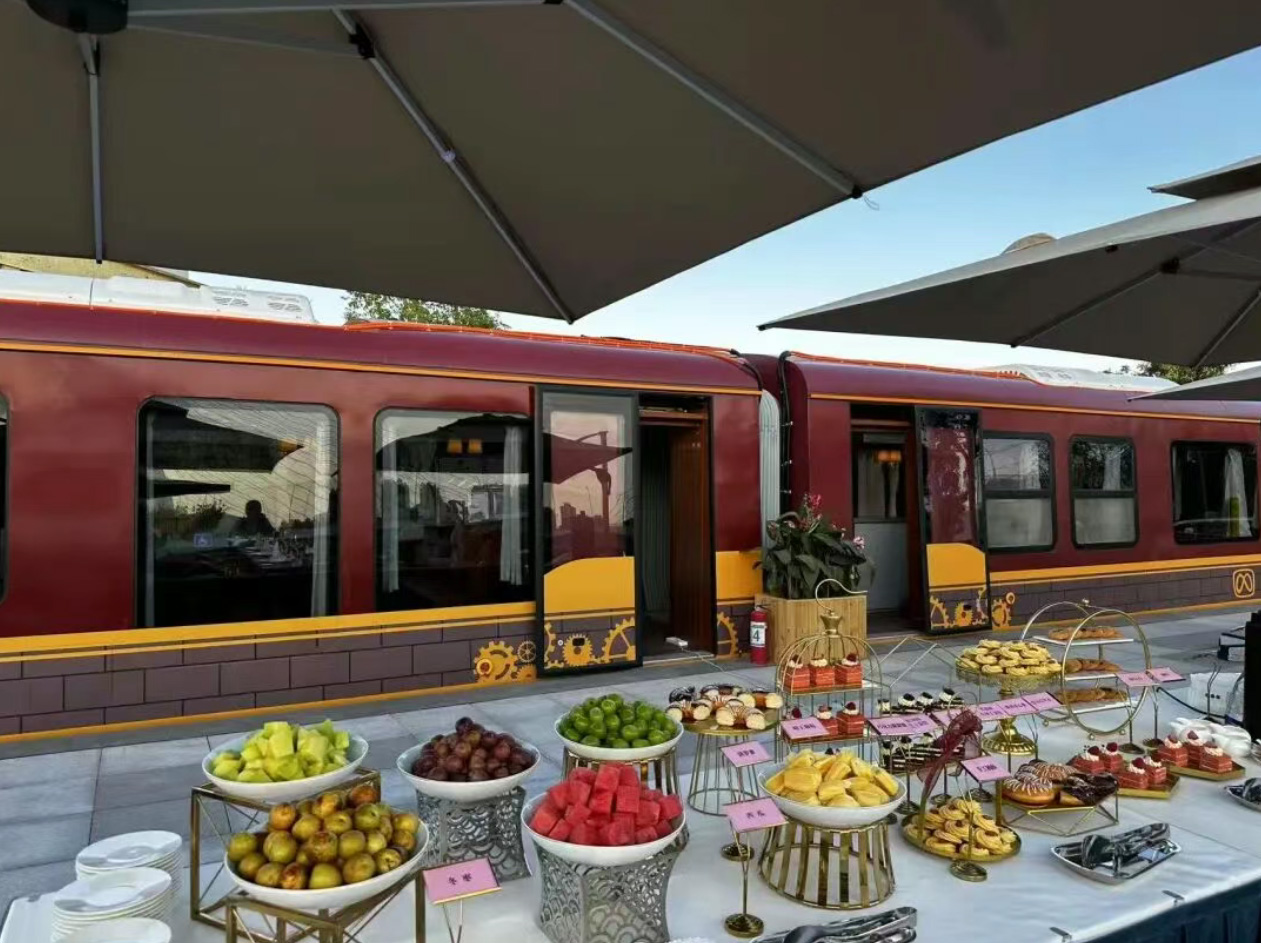 永定河旅游观光火车项目位于永定河左岸火车乐园,引入了高品质餐饮等业态,打造网红火车餐吧,形成“望西山、观湿地、看日落、品美食”滨水活力打卡点。供图/北京市发改委